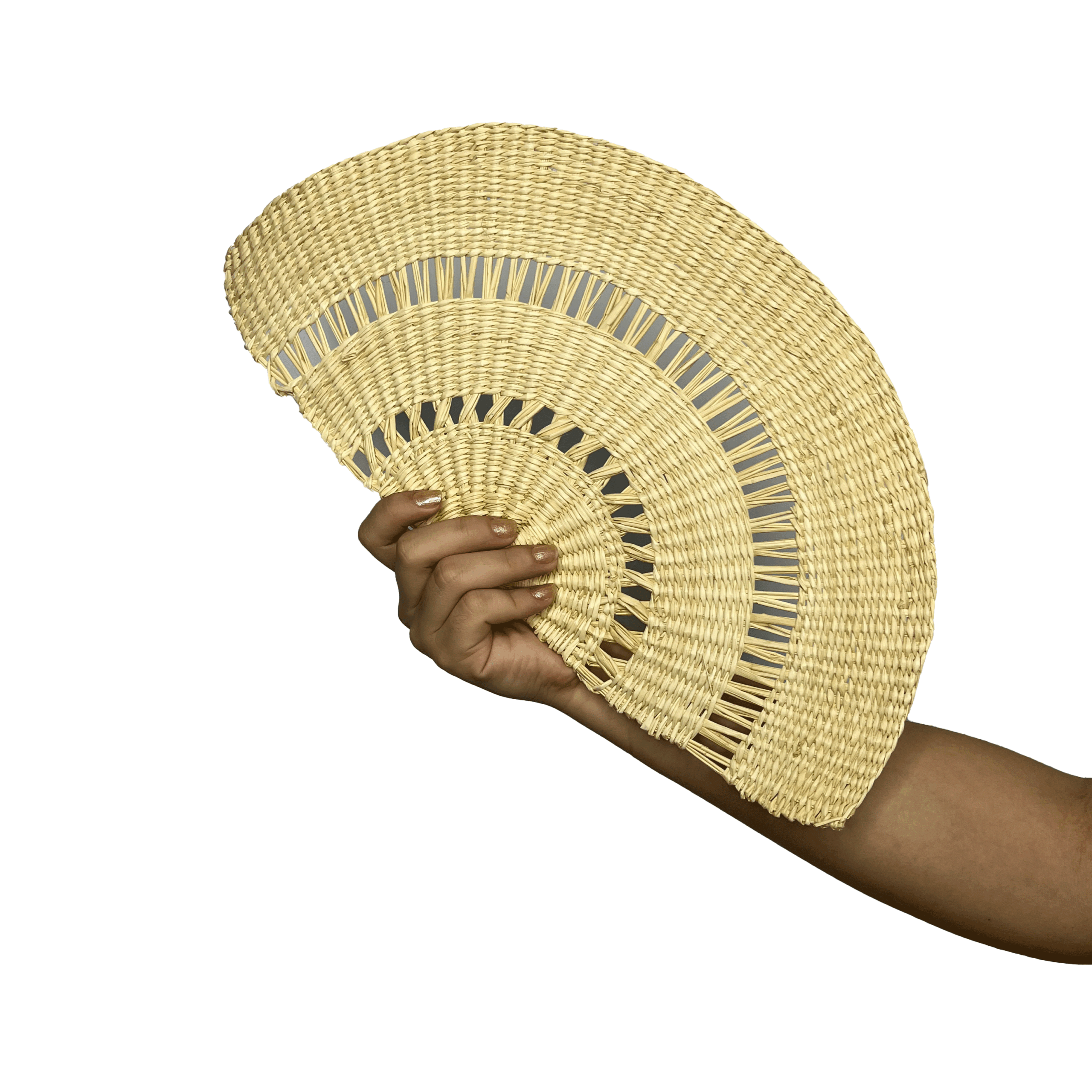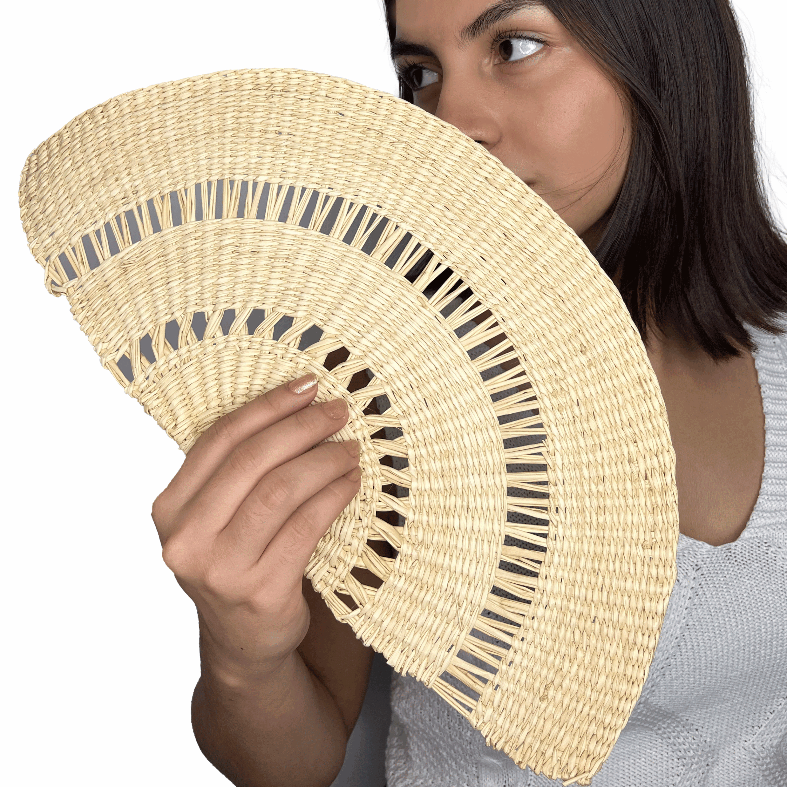 Abanico de paja toquilla, elaborado a mano por artesanas ecuatorianas.